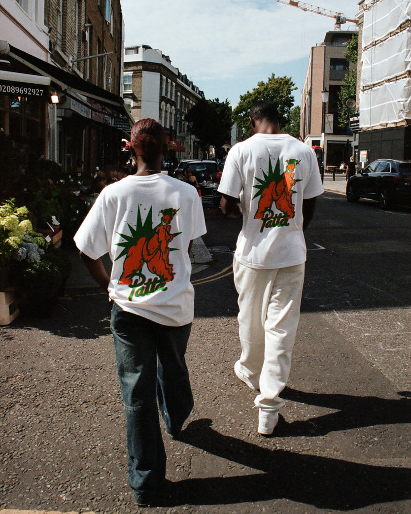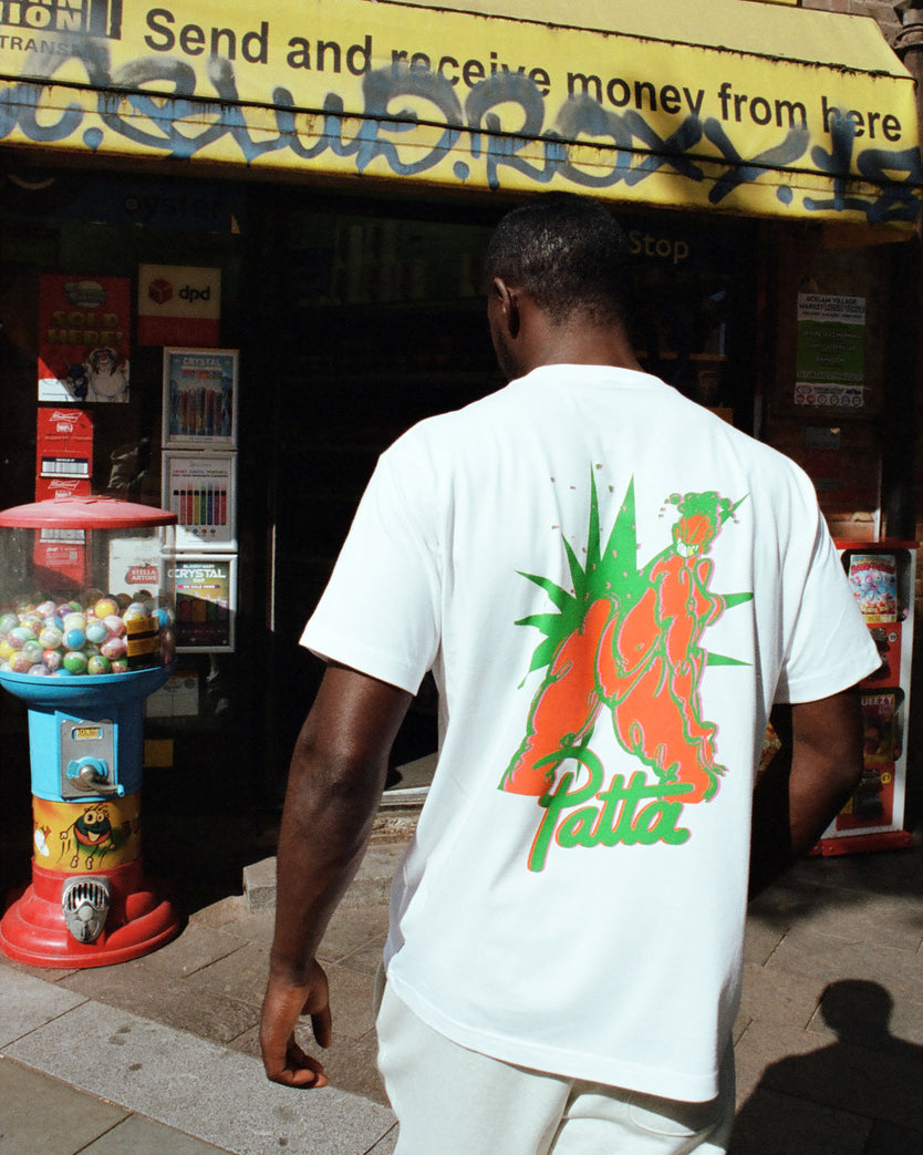 The artwork shows a lively dancing figure, rendered in a captivating burst of colours that mirror the vibrancy of celebrating in the capital city. With a limited run, the Patta Dance T-Shirt is a London exclusive, this one is by the London community, for the London community, available August 23rd, 2023, solely in our Patta London chapter.